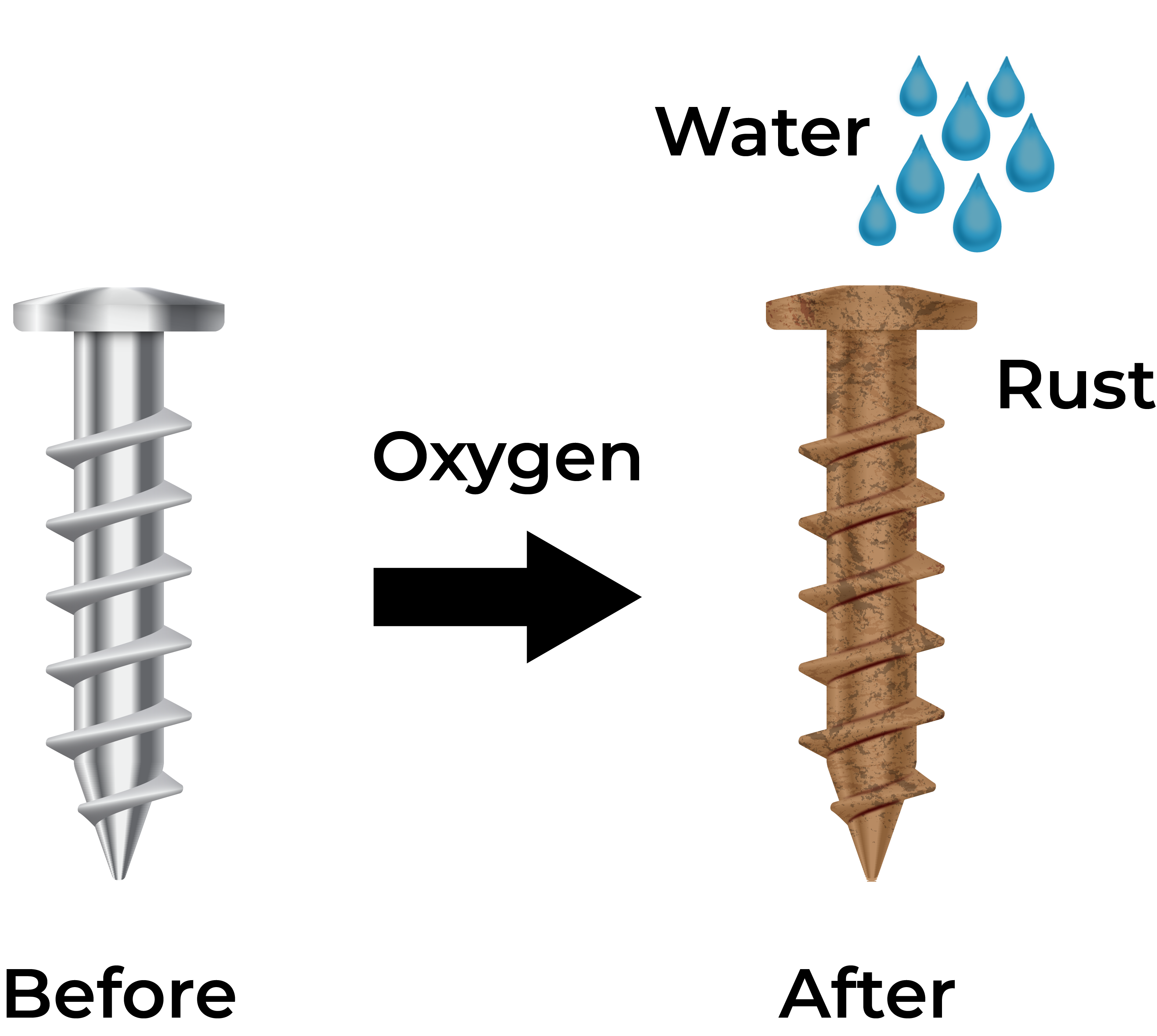 When iron or steel is exposed to oxygen and moisture, it reacts to